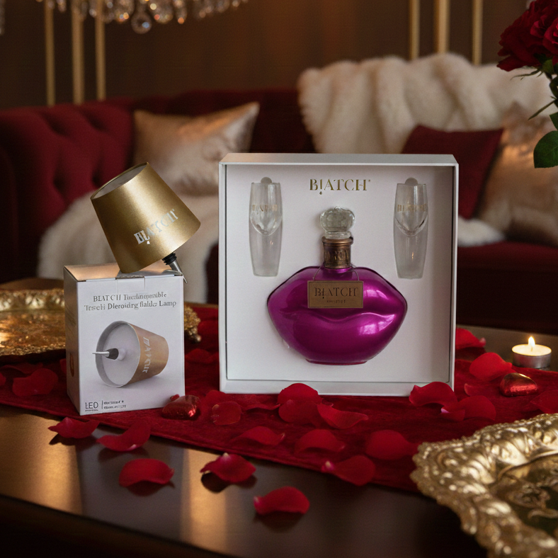 Also included is the BIATCH® Light-Up Bottle Lamp, designed for reuse with BIATCH® 750mL bottles. Featuring a brushed brass finish, three light modes, and USB rechargeability, it keeps the vibe going long after the last sip.